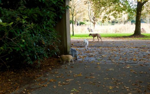 Ochtend in het Sarphatipark. Mensen zijn hun honden an het uitlaten. Joggers zijn onderweg.